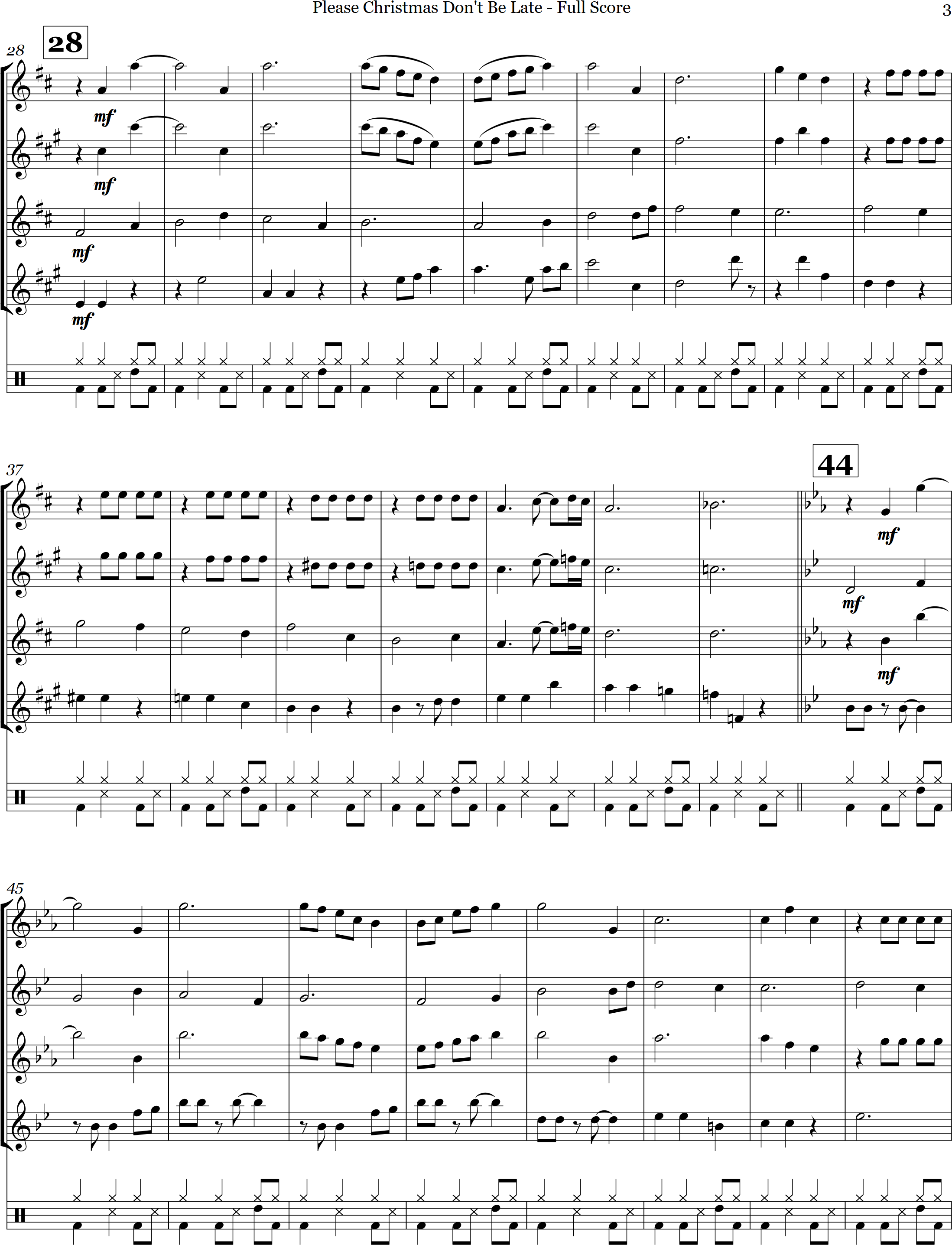 Please Christmas Don't Be Late | swing | Intermediate | C/Db/Ab/C | A favourite from the Chipmunks, here is Please Christmas Don't Be Late arranged for 4 saxes and percussion | ||||