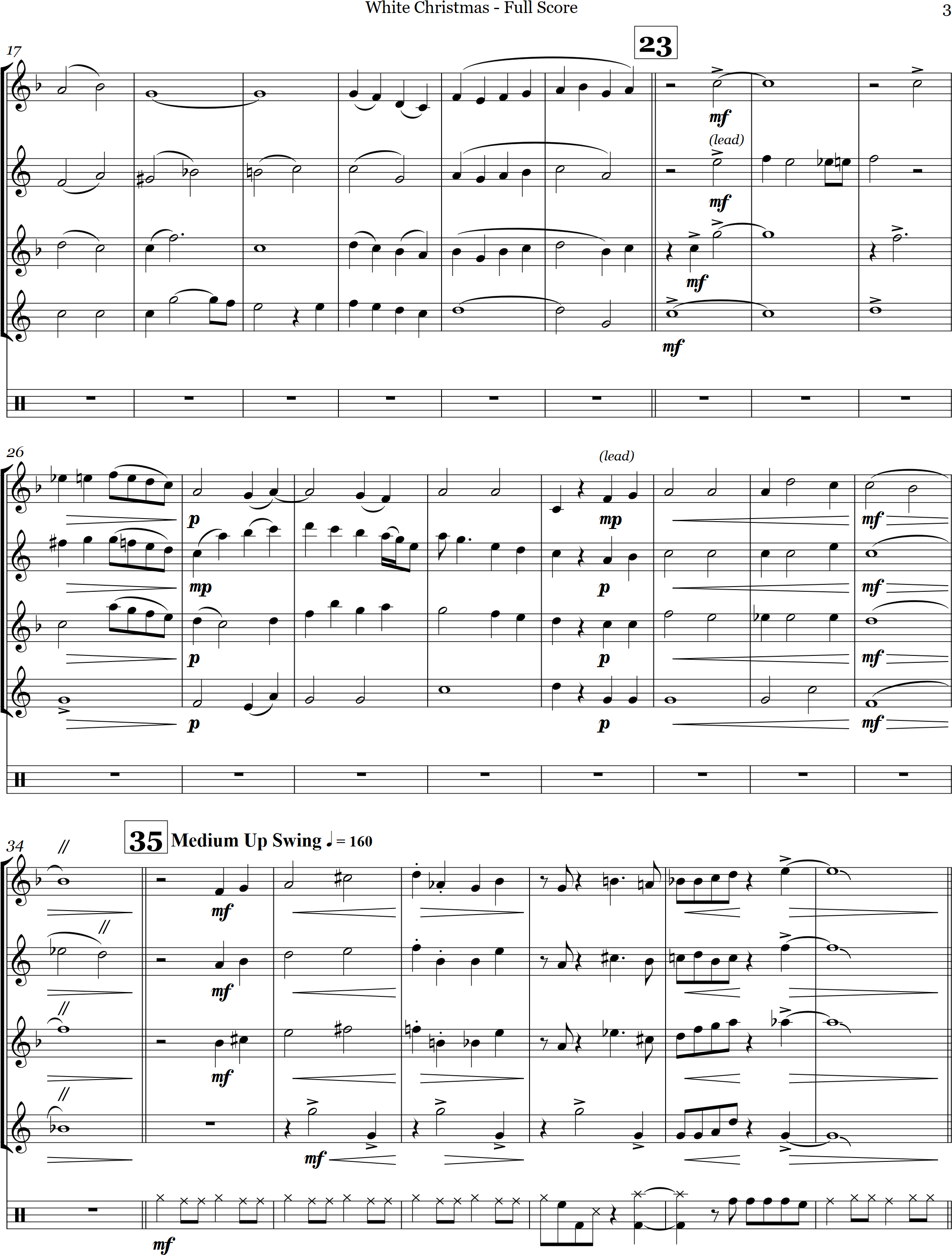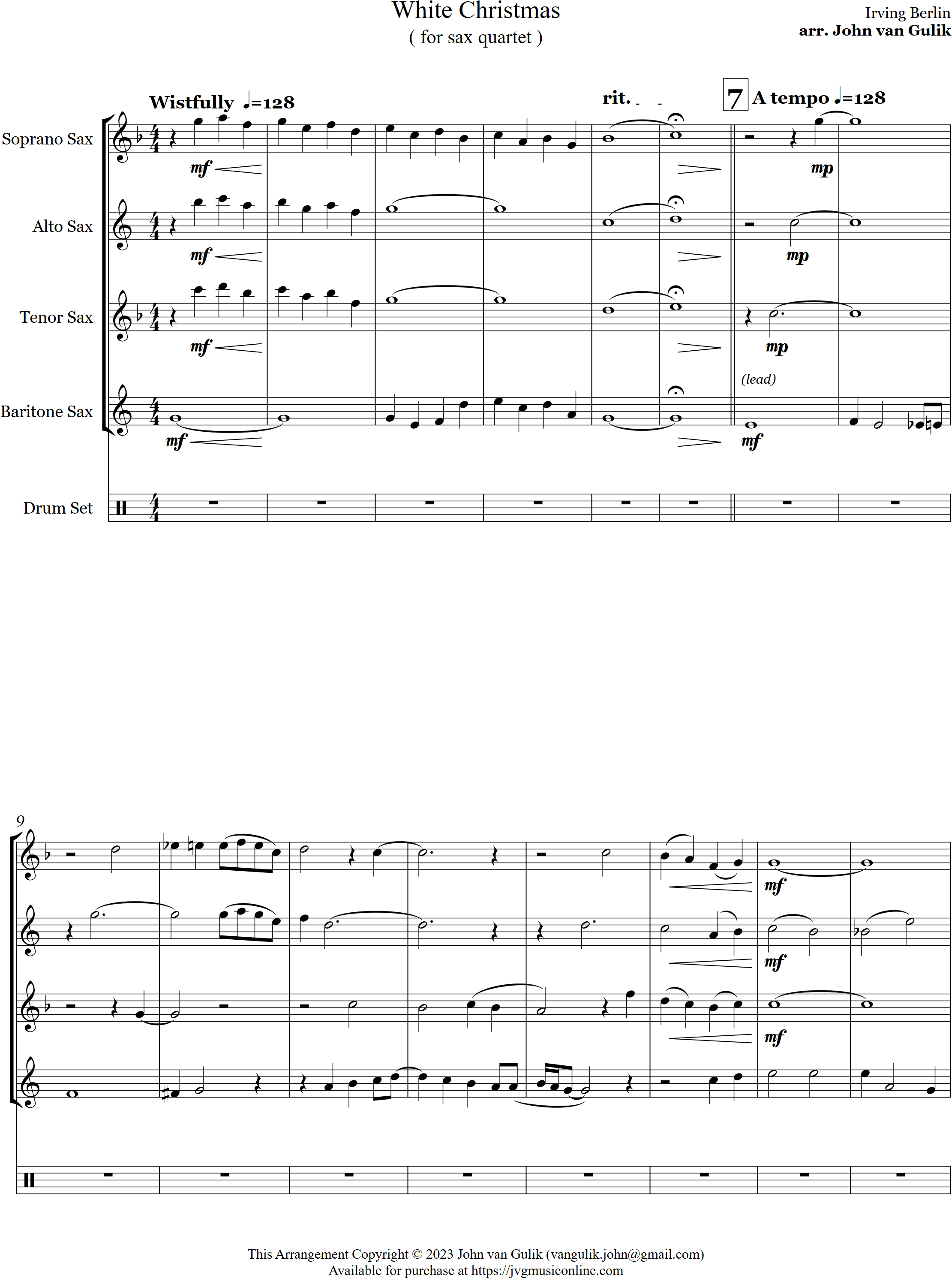 White Christmas | swing | Advanced | Eb/Bb | Featuring a bass sax intro followed by an uptempo swing style, here is White Christmas arranged for 4 saxes |