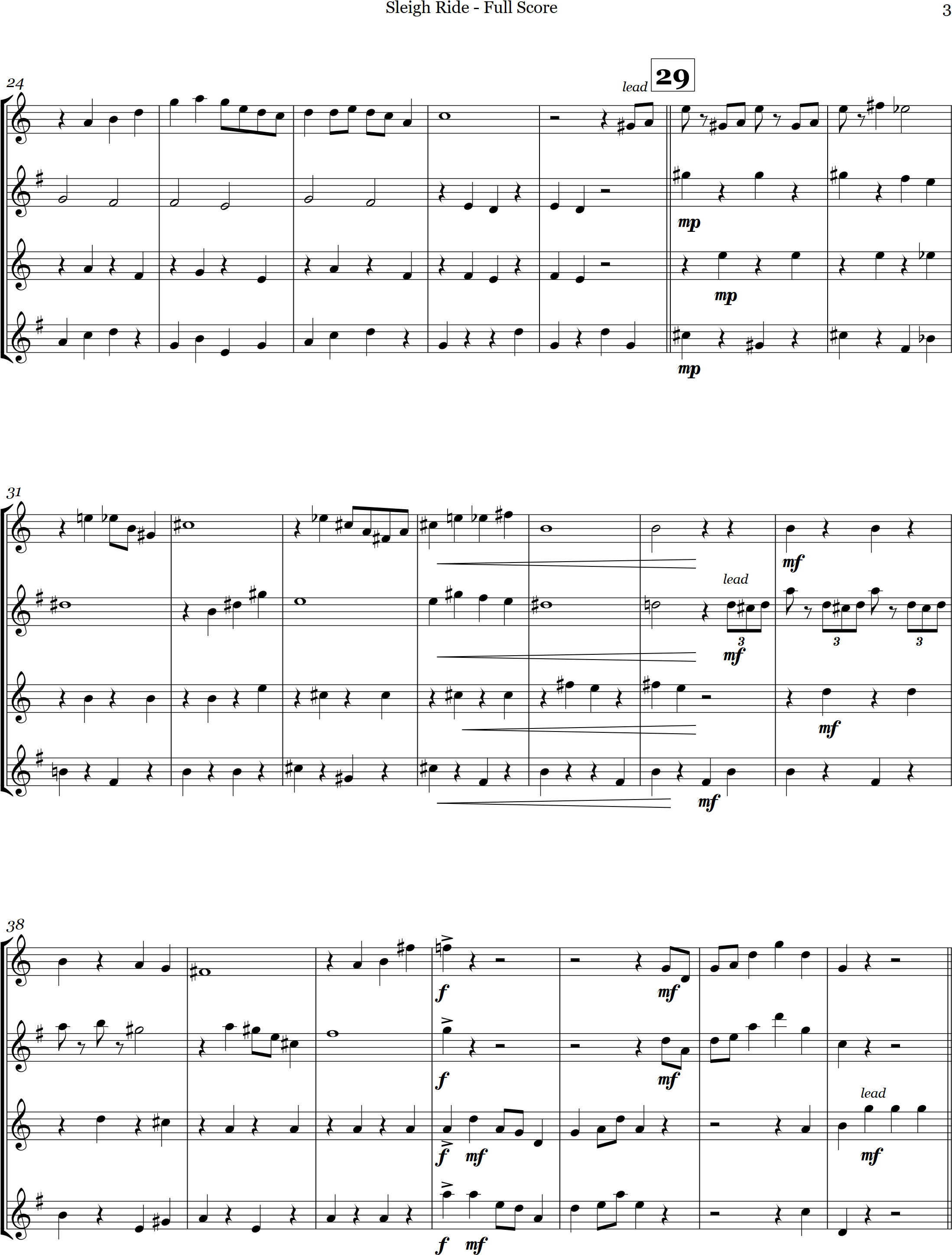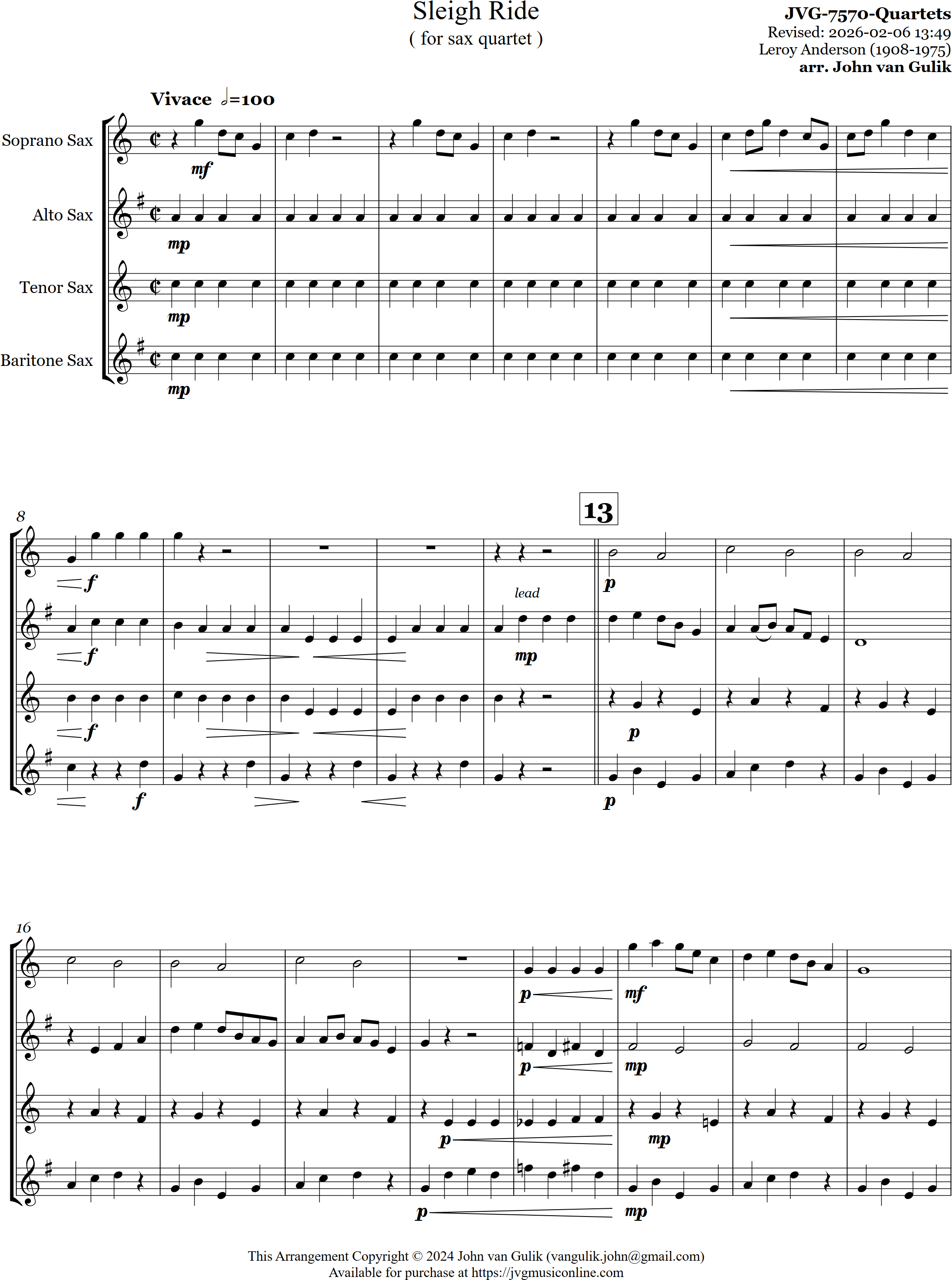Sleigh Ride | pop | Advanced | Bb/C/Bb/Cb/Eb/Db/Cb | Classic holiday favorite arranged for sax quartet | ||||