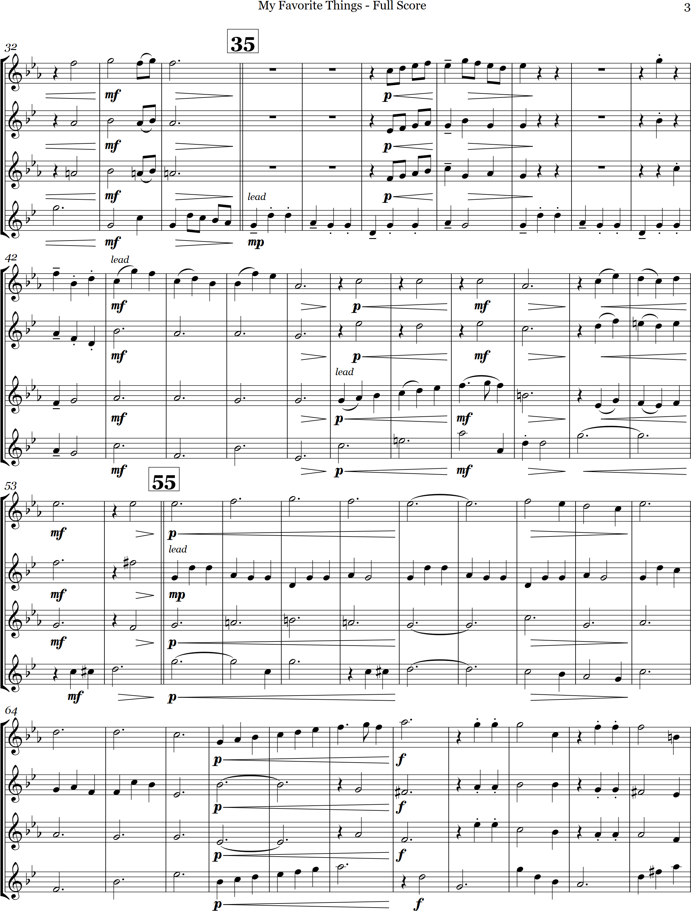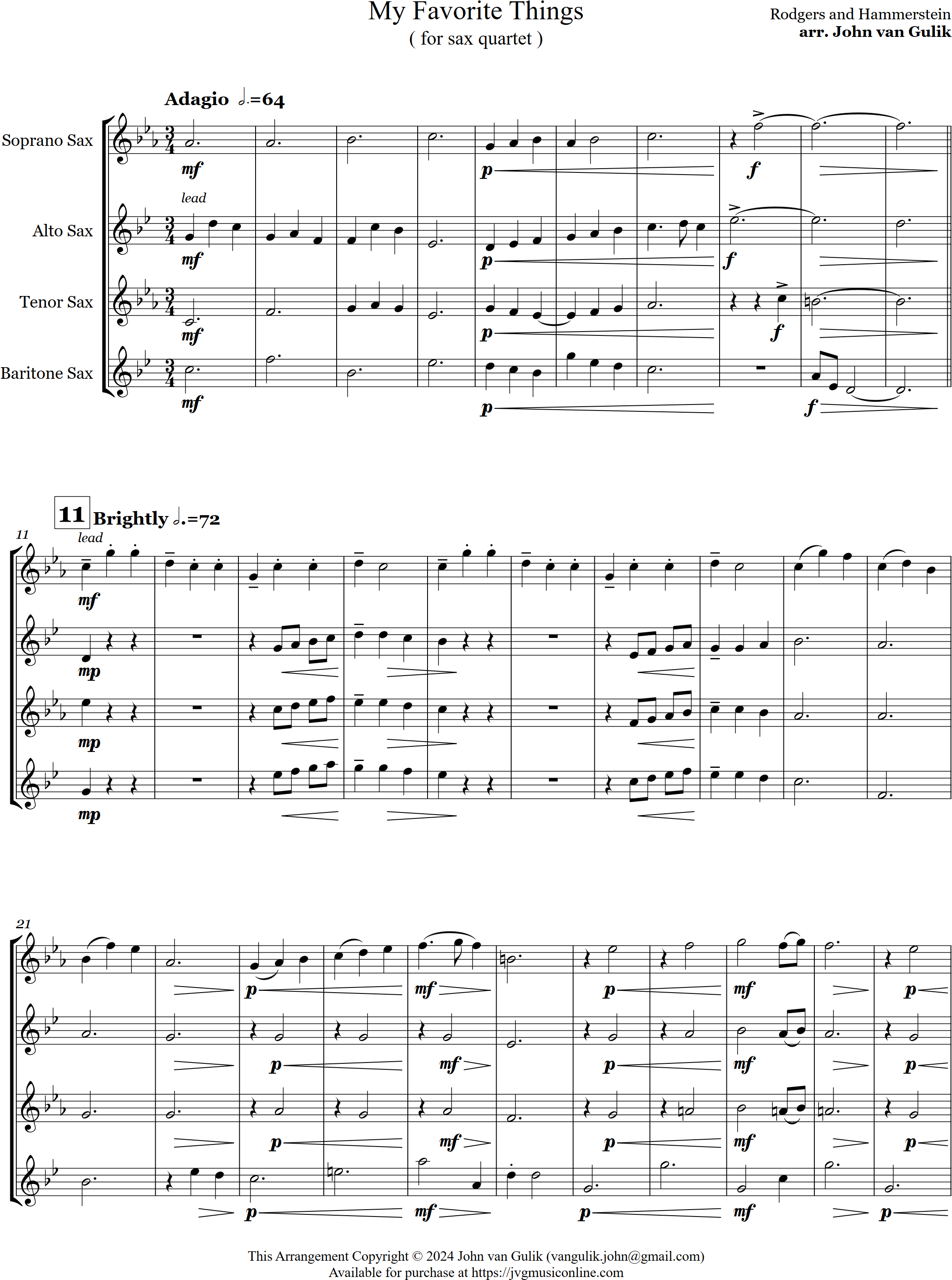 My Favorite Things | pop | Intermediate | Db/Bb | Here's a great arrangement for sax quartet Here Are a Few of My Favorite Things from the Sound of Music | ||||